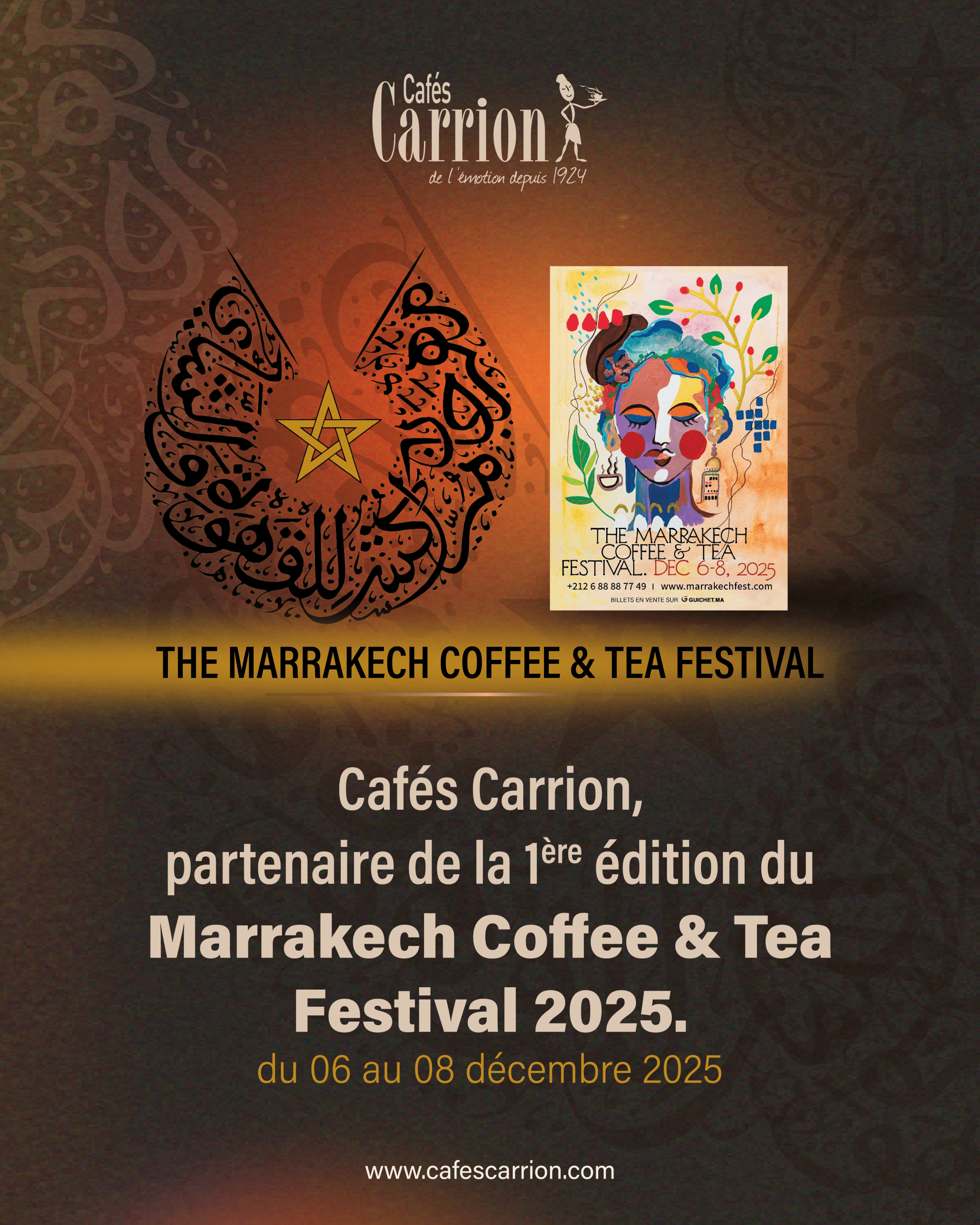 Cafés Carrion a participé à la première édition du Marrakech Coffee & Tea Festival 2025, un événement incontournable dédié aux passionnés de café et de thé. Le festival s’est tenu du 06 au 08 décembre 2025, réunissant professionnels, artisans et amateurs, dans une ambiance chaleureuse et enrichissante.
