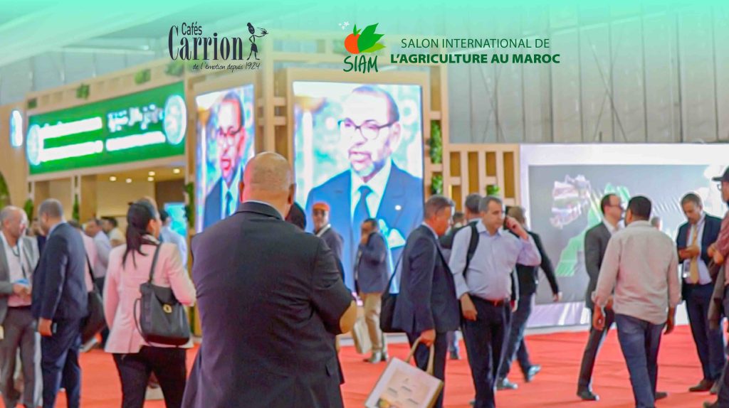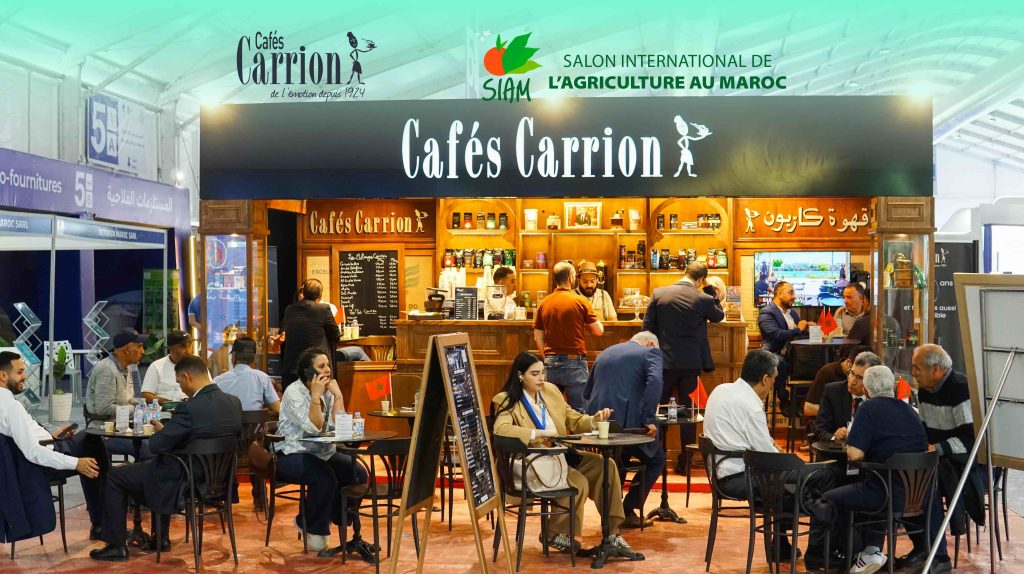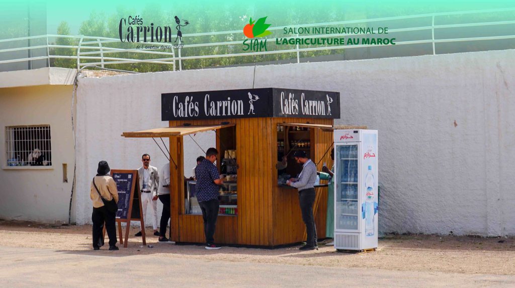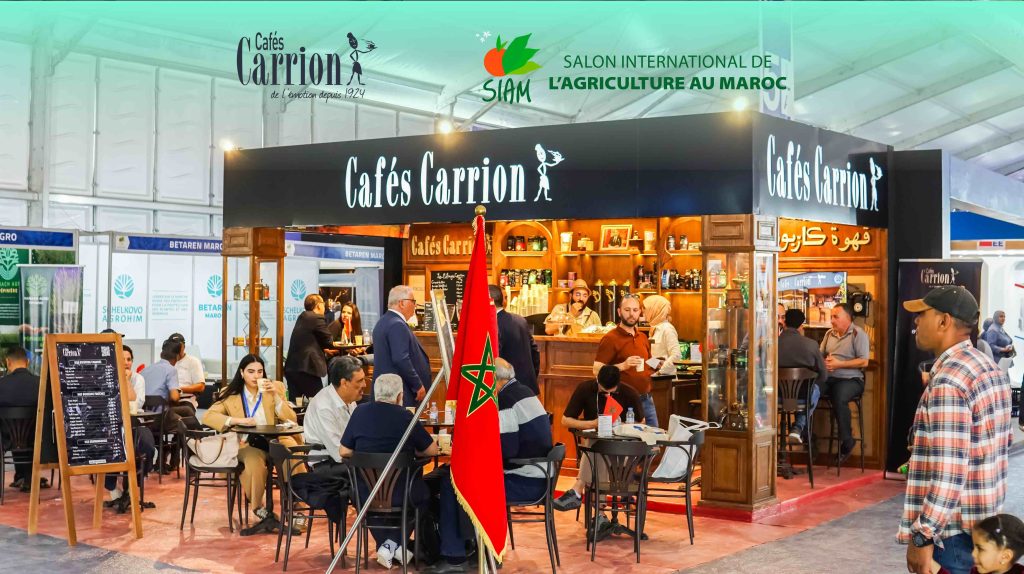 Cafés Carrion participe à la 18ème édition du Salon International de l’Agriculture au Maroc (SIAM), qui se tient à Meknès du 20 au 28 avril 2026, un événement incontournable rassemblant chaque année de nombreux visiteurs et professionnels, avec un stand intérieur et plusieurs kiosques externe à divers emplacements.